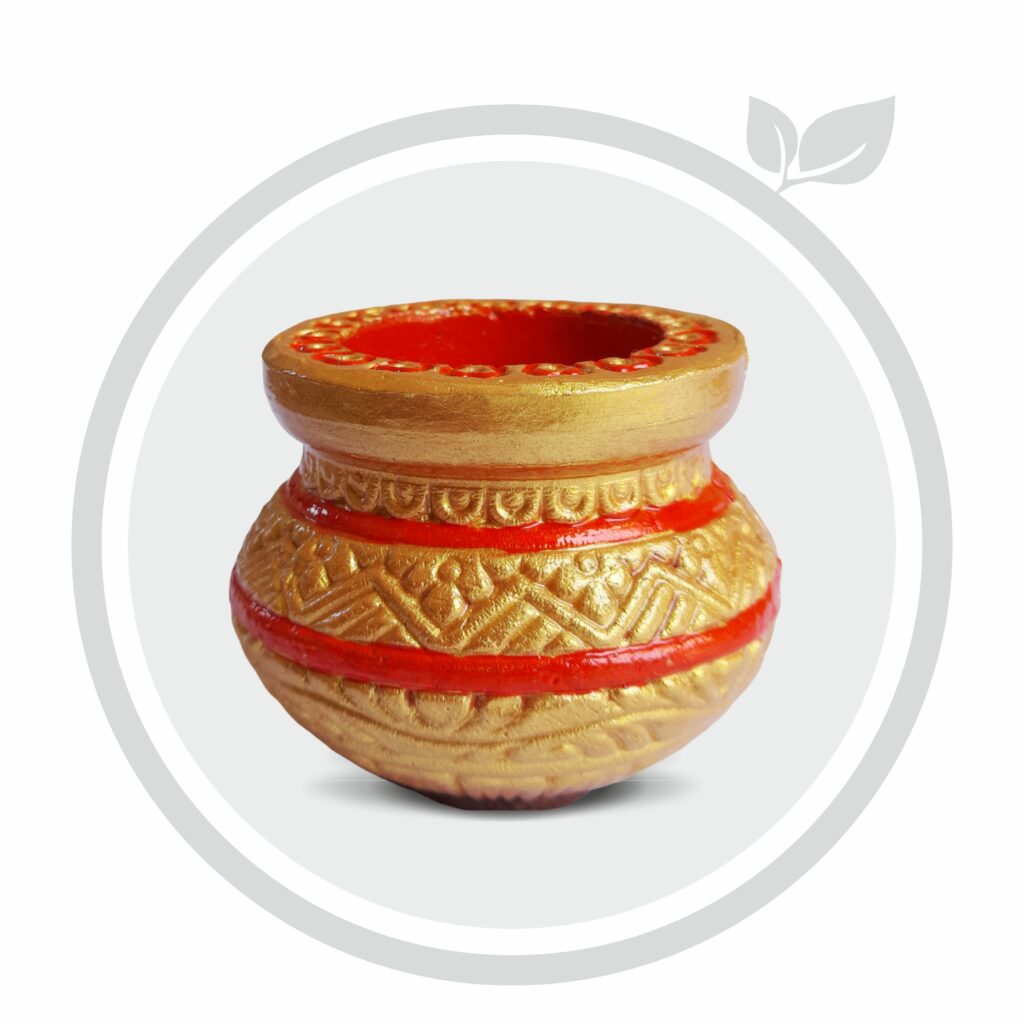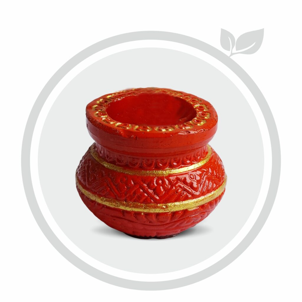 These handcrafted red clay pot diyas are beautifully decorated with golden detailing, symbolizing light, tradition, and positivity. Perfect for Diwali, puja, or home decoration, they bring a festive glow and artistic touch to your space, spreading warmth, purity, and divine energy all around.