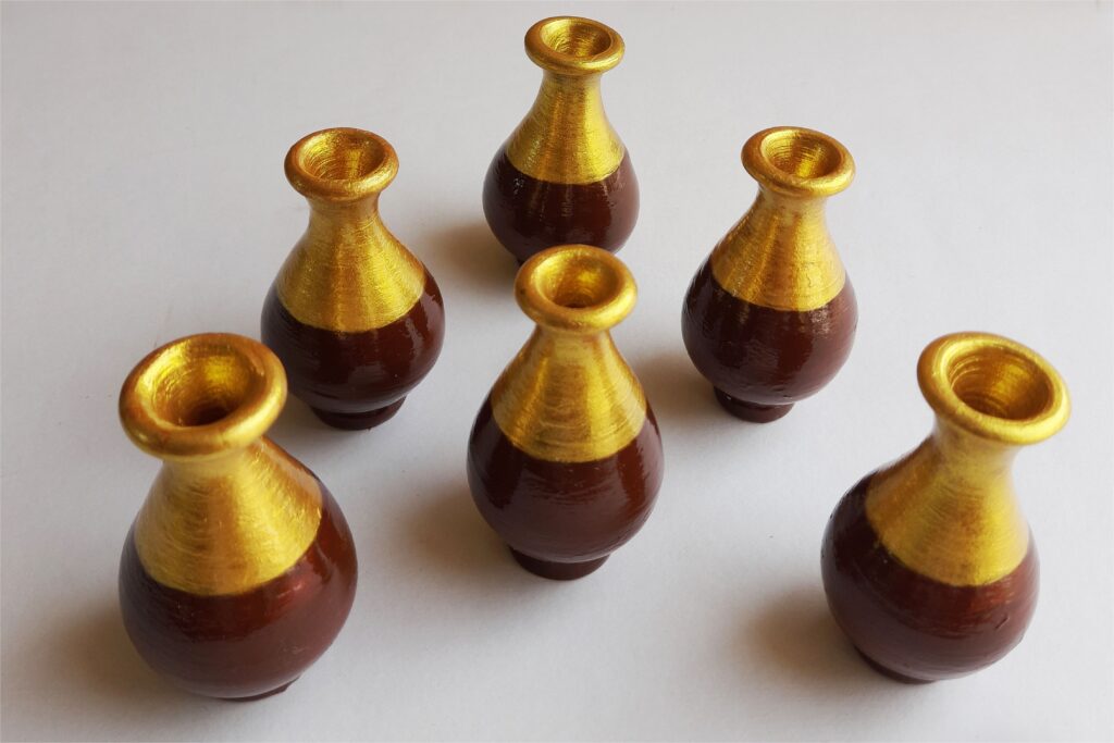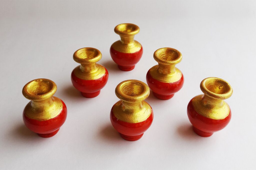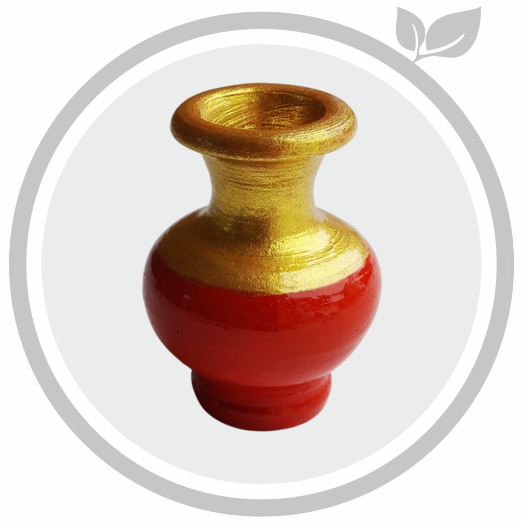 MINIATURE CLAY VASESArtistic Charm in Every Shape Hand Painted Terracotta Mini Vases Handcrafted and vibrantly painted clay mini vases to add a touch of art and tradition. Perfect for décor, gifting, or displaying small blooms. RED-GOLD BROWN-GOLD